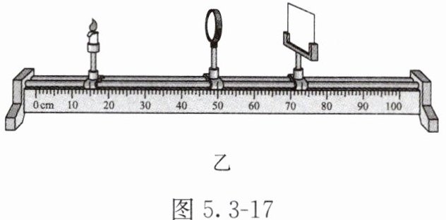 10. 小明利用如图 5.3 - 17 所示的实验装置探究凸透镜成像的规律。