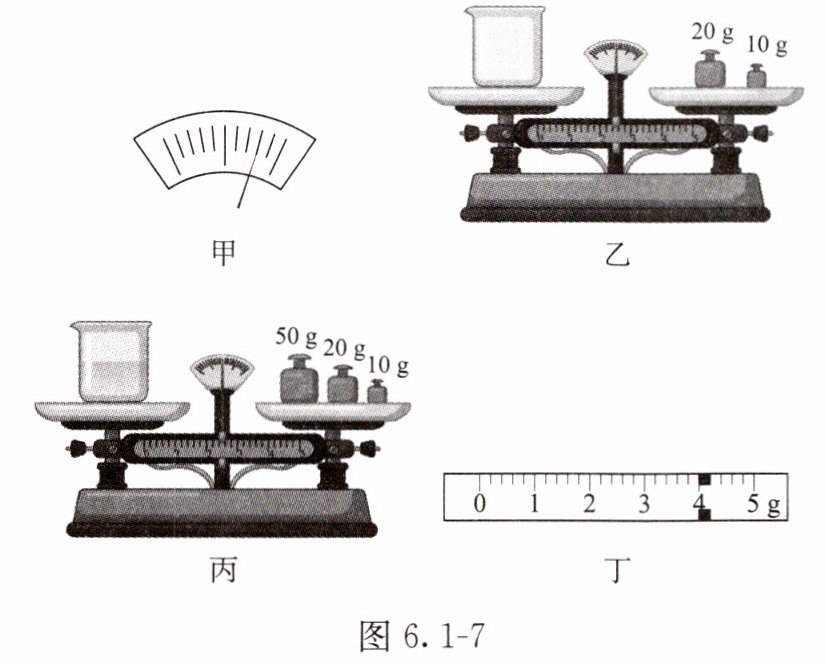 (2) 由图6.1 - 7乙、丙可知,烧杯的质量为______ $ g $,烧杯中液体的质量是______ $ g $。