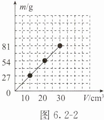 (3)用横坐标表示体积,纵坐标表示质量,根据所给的数据用描点法画出铝块的$m - V$图像,如图6.2 - 2所示。