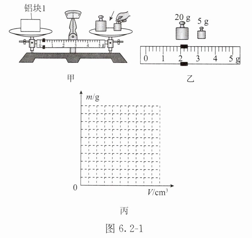 (3)请在图6.2 - 1丙中画出铝块的质量随体积变化的图像。