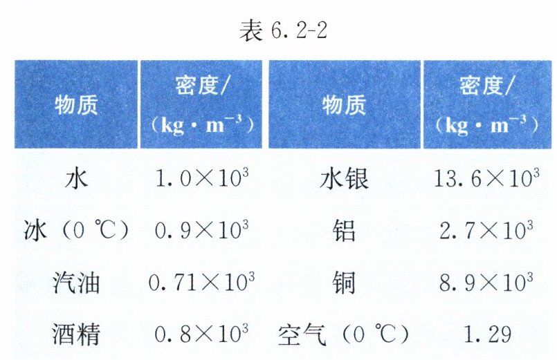 3. 表6.2 - 2列举了一些物质的密度(常温常压),物理实验小组根据此表中的信息展开了讨论,请回答下列问题。