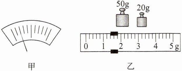 (2)由图乙知,岩石的质量$m = 50g + 20g + 1.4g = 71.4g$。