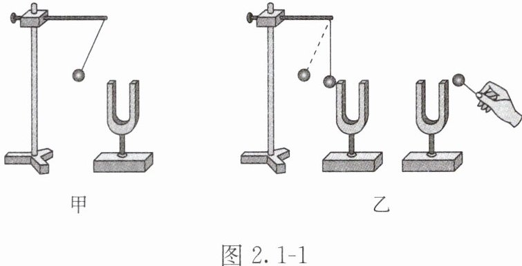 (1)如图2.1-1甲所示,正在发声的音叉将悬挂着的乒乓球反复弹开,说明声音是由物体