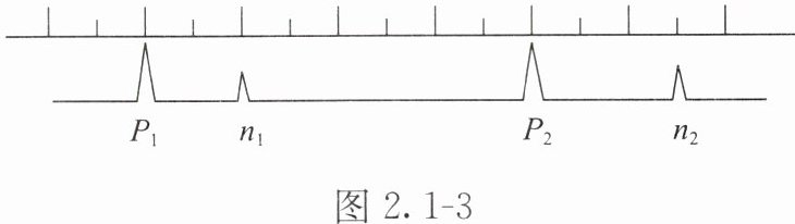 6. 某超声波测速装置工作时可以定向发出超声波。一辆汽车始终在装置的某一方位上沿直线行驶。如图2.1-3所示为装置屏幕,屏幕上方有标尺,$P_1$、$P_2$是装置发出的相邻两次超声波信号,其时间间隔为4s,$n_1$、$n_2$是$P_1$、$P_2$由汽车反射回来后装置接收到的信号。设装置匀速扫描,空气中的声速为340m/s。下列说法正确的是(