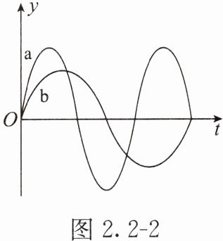 5. 如图 2.2 - 2 所示是小明同学在资料中查到的 a、b 两列声波图,产生这两列声波的声源在振动时,声源振动较快的是
