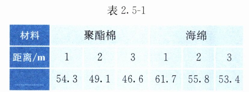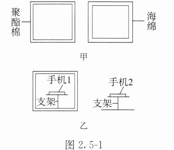1. 小明探究比较聚酯棉材料和海绵材料的隔音性能,实验装置如图2.5-1所示。