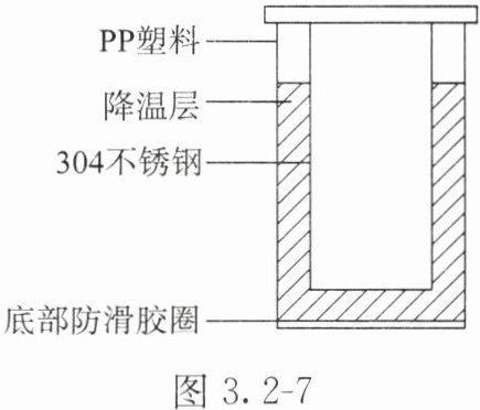 5. 如图3.2 - 7所示是一个自动控温杯的结构示意图,外壳用较厚的PP塑料制成,内胆使用的是304不锈钢,降温层材质的主要成分是海波(熔点为$48$ $^{\circ}C$),在$20$ $^{\circ}C$的环境中,下列说法正确的是(
