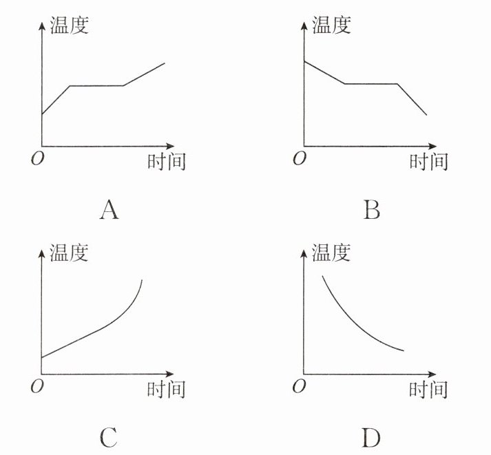 2. 《天工开物》是我国古代一部综合性科学技术著作,其中许多记录都与物理知识有密切关系。其中篇章“生熟炼铁炉”记载:古人将铁料熔炼成铁水,炙热的铁水顺着高处管道流入几尺远的较低水塘并完成淬火,最终制成熟铁。关于温度与时间的关系图像,下列能反映铁水进入水塘完成淬火过程的是(