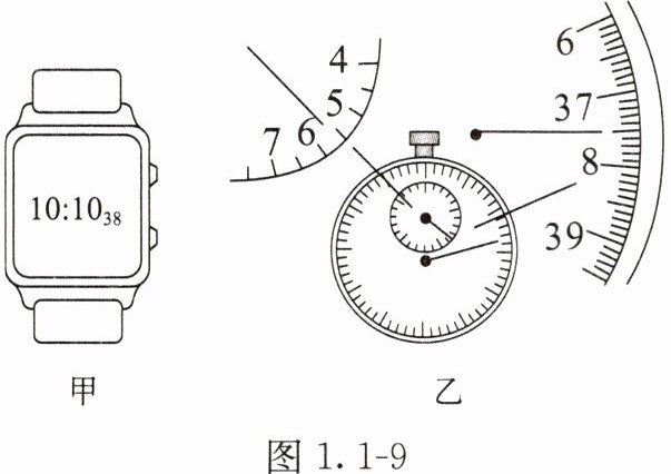 秒;热身结束后进行1000 m的跑步训练,老师利用如图1.1-9乙所示的机械秒表计时,机械秒表的大盘的分度值是
