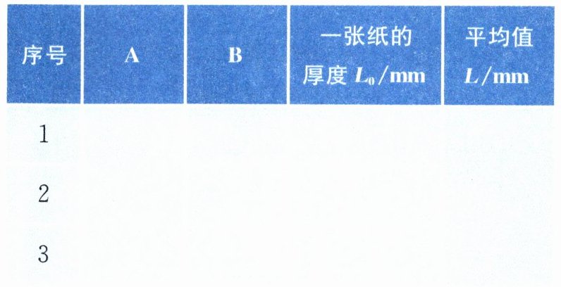 。他做了三次实验,并算出一张纸的厚度分别为0.086 mm、0.088 mm和0.087 mm,则这张纸的厚度可记录为