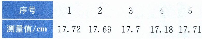 (2) 他的测量数据中存在错误。错误数据有17.7 cm、17.18 cm,前者没有估读到分度值的下一位,后者与其他数据差异较大。