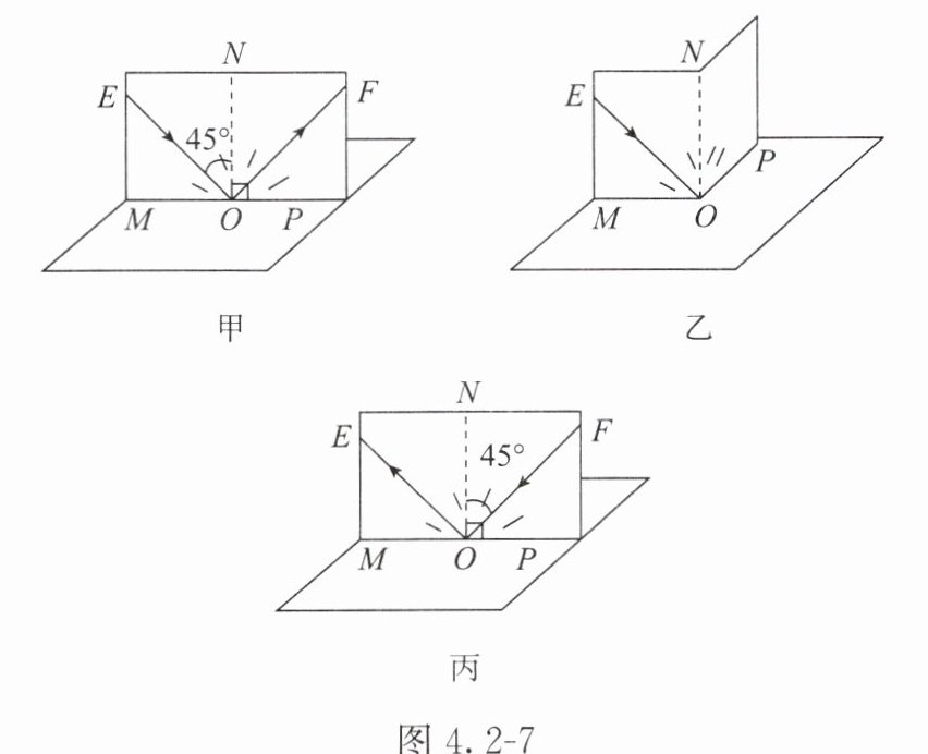 1. 图 4.2 - 7 是小天探究光的反射定律的实验过程。下列说法错误的是(
