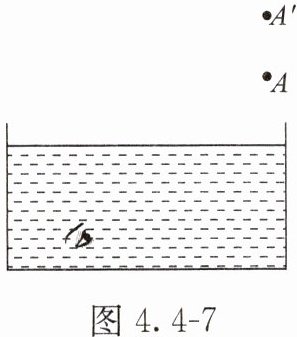 4. 如图 4.4 - 7 所示,人在水中看岸上的物体 $A$,则 $A'$ 为人看到的物体的像,作出人看到像的光路图。
