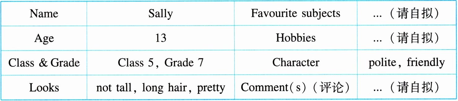 请根据表格中的信息,以“My new friend”为题写一篇短文,介绍你的新朋友萨莉。词数 70 左右。