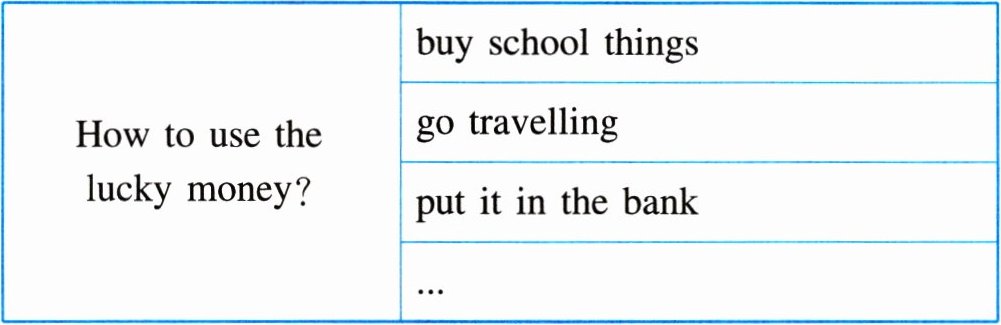 You got some lucky money during the Spring Festival, but you don't know how to use the money. Here is some advice for you.First, you can buy school things with it, such as books, pens and rulers. These are things we need. Second, it's a good idea to use it to go travelling because travelling is your favourite. Also, you can put the money in the bank. One day you may use it to help the people in need or do something you want to do.Anyway, try to use the lucky money in a meaningful way.