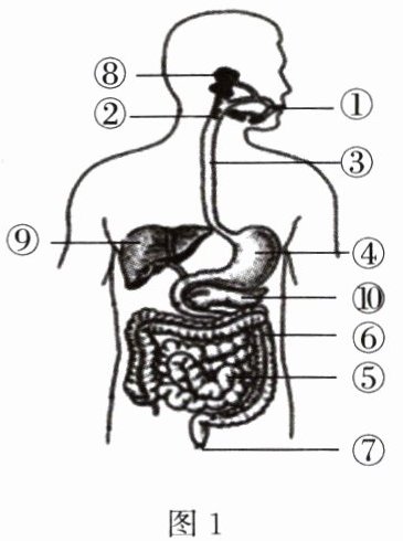 (2)研究发现,长期不吃早餐,会使胆汁浓度增加,容易促进胆结石形成。如果每日早餐规律,则可促进部分胆汁流出,降低一夜所贮存胆汁的黏稠度,大大降低患胆结石的风险。胆汁是由图 1 中的[ ]______分泌的,能促进脂肪的分解。为减少胆结石的发生,生活中要养成______的习惯。