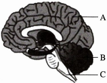 C. 醉酒者常常表现出走路不稳的现象,原因是酒精麻痹了图中的 A