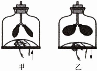 9. 右下图表示模拟膈肌运动的实验,小林吸气时,他体内的变化对应的是(