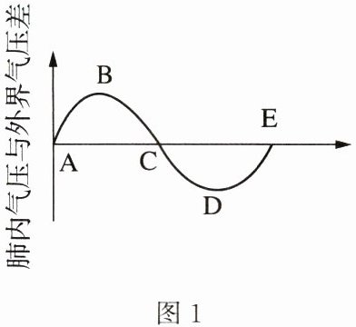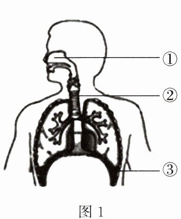(1)胸廓的变化与呼吸运动的关系密切,当人体完成吸气过程时,图 1 中[③]应处于