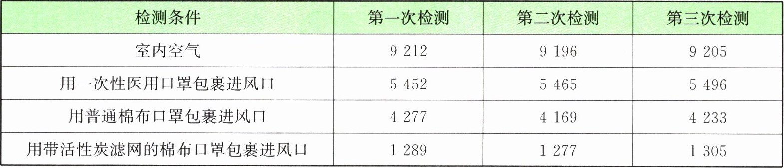 为了应对不时出现的雾霾天气,出门戴口罩成了大多数人的选择。口罩的类型有很多,那么哪种材料制成的口罩阻隔 PM₂.₅ 的效果更强呢?某兴趣小组利用 Dylos - DC1700 空气质量检测仪做了模拟实验。该仪器测量 PM₂.₅ 的计量单位为 μg/m³。