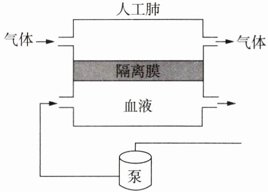 在医院重症监护室,一名重症肺炎患者生命垂危,肺部无法正常工作。医生紧急启用人工肺,透明管道连接着患者与设备,血液在其中循环,设备模拟肺进行气体交换,维持患者生命(如下图所示)。请据此回答 1~4 题。