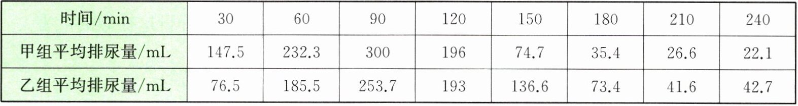 (1)人体代谢产生的多余水分,排出体外的方式除排尿外还有多种,因此,为了排除这些因素对实验的影响,实验中严格要求志愿者