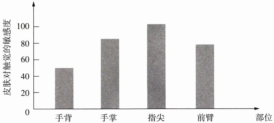 8. 某生物小组在课内探究中,利用针测试不同部位的皮肤对触觉的敏感度,统计数据如下图所示。下列说法中正确的是 ( )
