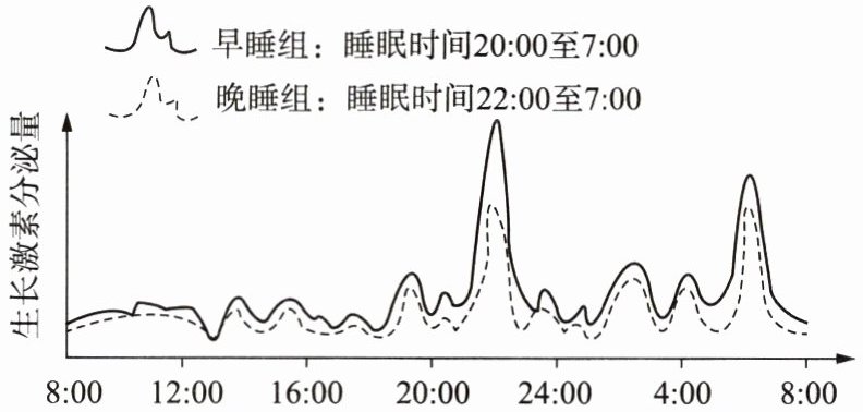 2021 年教育部印发《关于进一步加强中小学生睡眠管理工作的通知》,明确提出要求初中生每天睡眠时间应达到 9 h。研究表明儿童和青少年睡眠时间段内生长激素的分泌量明显增多,有利于骨骼、肌肉的生长。请分析并回答 7~11 题。