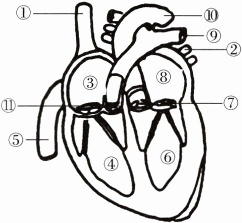 (2)心脏的四个腔中,壁最厚的是______(填标号)。心脏的右心室和左心房连通的血管分别是______、______。