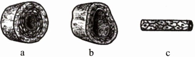 (2)材料二中,人造动脉是如上图所示的血管____(填字母),该人造动脉需要满足以下条件:血流速度快,管壁____,弹性大。