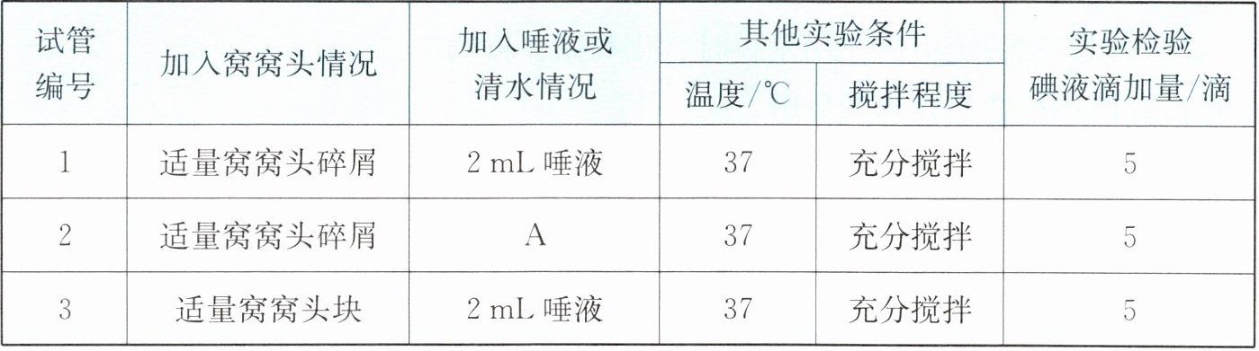 (1)为探究唾液对窝窝头是否有消化作用,在2号试管的A处应加入