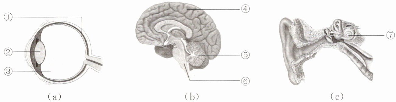 D.对闪电光线敏感的细胞在(a)中的①处,而对雷声敏感的感觉细胞在(c)中的⑦处
