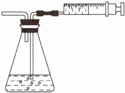 5. 如右图所示,某同学为验证空气中含有少量二氧化碳,将大针筒内的空气一次性压入新制的澄清石灰水中,发现石灰水没有变化。据此,你认为该同学应该(