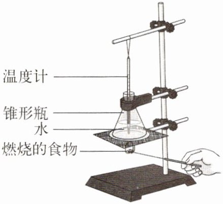 答案:(1)花生 (2)多 种子燃烧过程有一部分热量散失 (3)点燃食物后迅速放入锥形瓶底;让火焰的外焰接触锥形瓶底;让食物充分燃烧完;火焰尽量靠近锥形瓶底中央等。