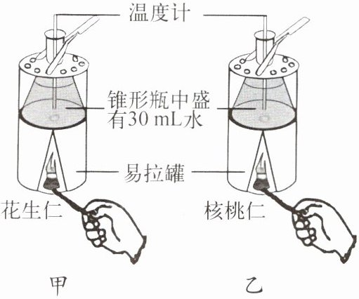D.甲、乙两组实验中,燃烧掉的花生仁和核桃仁质量要相同
