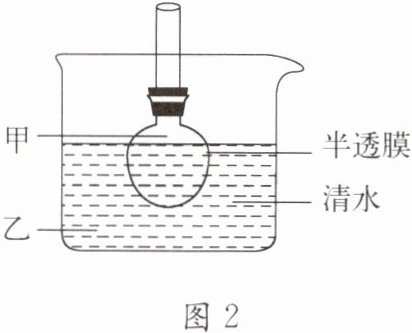 (3)不同器官内的蛋白质经过消化以后,产物能否被人体直接吸收?进一步设计模拟实验进行探究。同学们分别将上述 4 个试管内的液体放入图 2 所示的装置甲内(半透膜允许水、氨基酸等小分子物质通过,其他的大分子物质则不能通过),一段时间后检测乙处氨基酸的有无及含量。