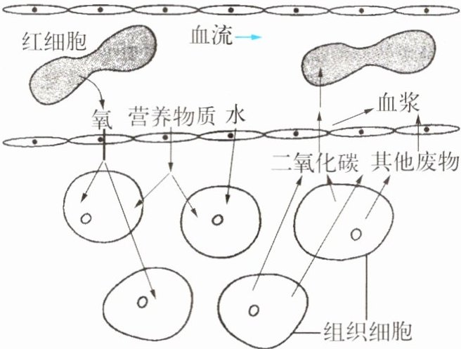 19. 下图为人体血液与组织细胞之间的物质交换示意图,请据图回答问题。