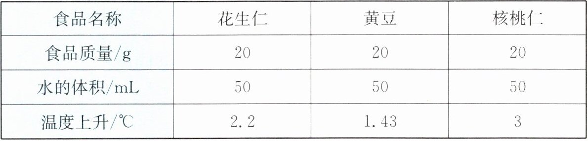 (1)从该兴趣小组的实验结果可以看出,花生仁、黄豆、核桃仁三种食物中,含能量最多的是