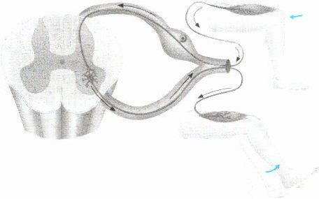 2. 右下图所示的是完成膝跳反射的神经结构,它由哪些部分构成?