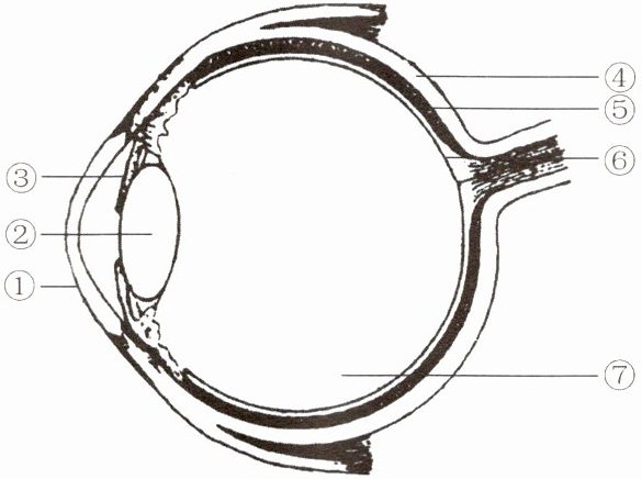 下图是眼球的结构示意图,请据图回答问题。(在方括号中填序号,在横线上填相应的名称)