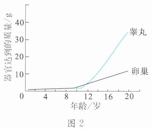 进入青春期后,男生和女生在身高、生理和心理等方面都发生着显著的变化,你感受到这些变化了吗?图1为某地男生和女生的身高增长速度曲线图,图2为睾丸和卵巢的发育趋势图。请据图回答问题。