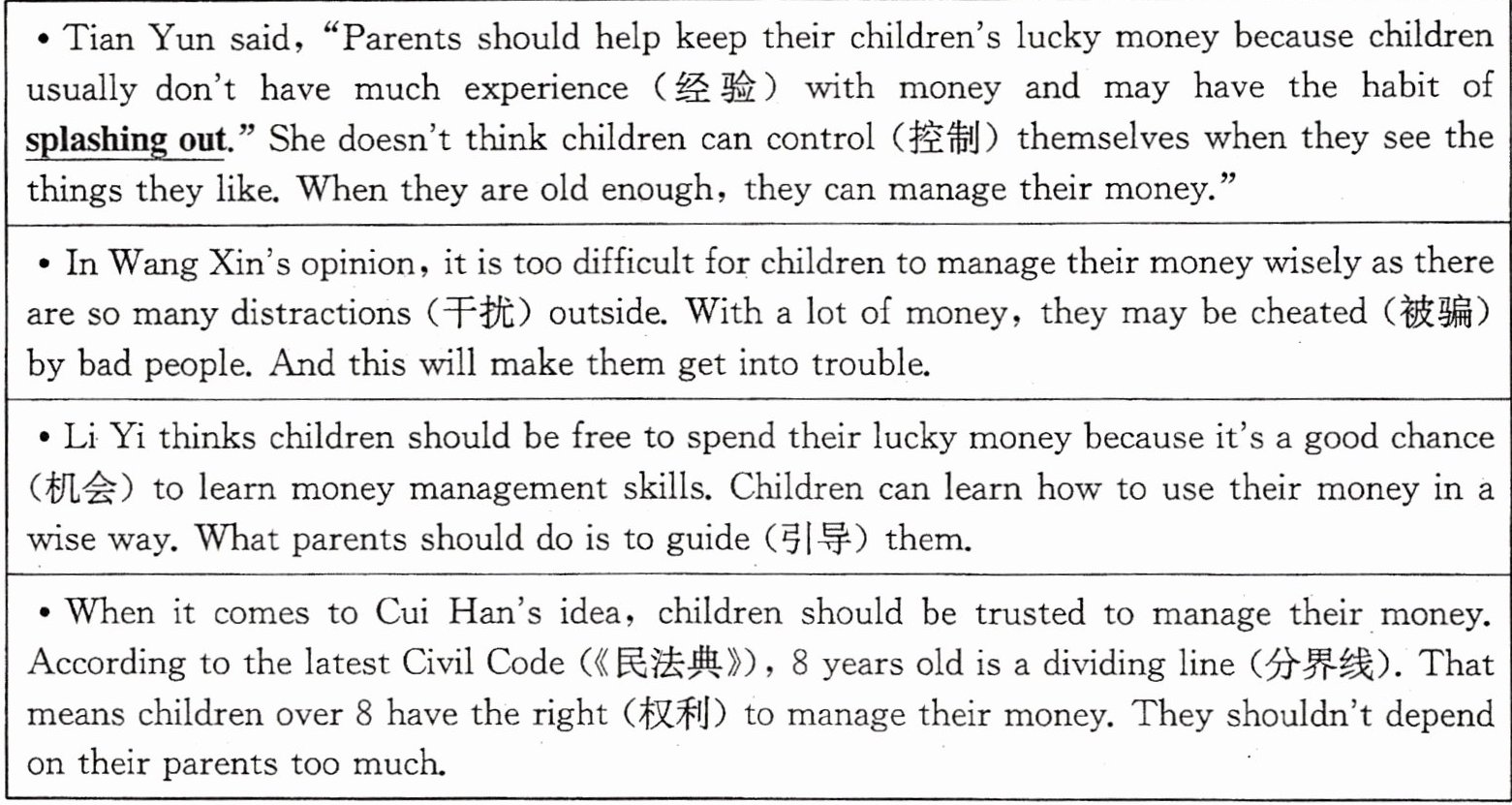 The Spring Festival is a time for children to get lucky money. Do you think parents should keep their children’s lucky money? Here, some middle school students are sharing their ideas online.