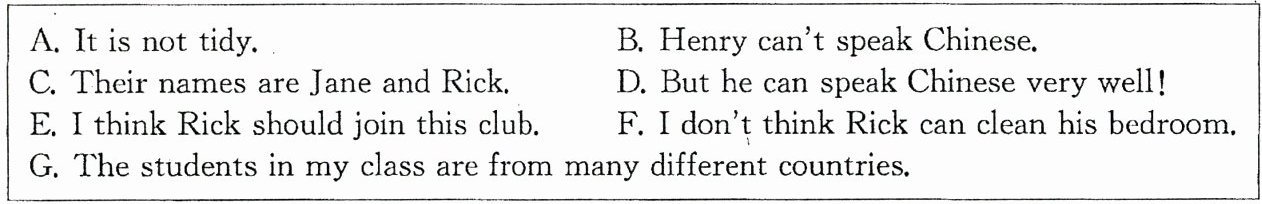 四、从短文后的选项中选出可以填入空白处的最佳选项。选项中有两项为多余选项(10分)