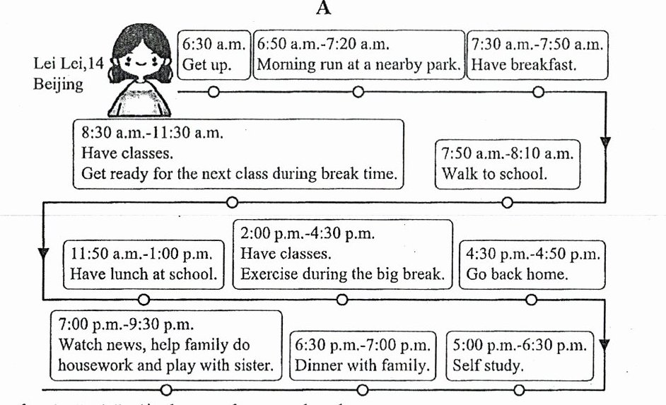 At the next stop, her father says the name of the stop with perfect pronunciation (发音). “This stop is the Red Road.”
