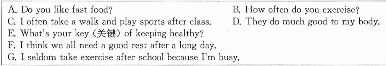 五、从对话后的选项中选出可以填入空白处的最佳选项。选项中有两项为多余选项(5分)