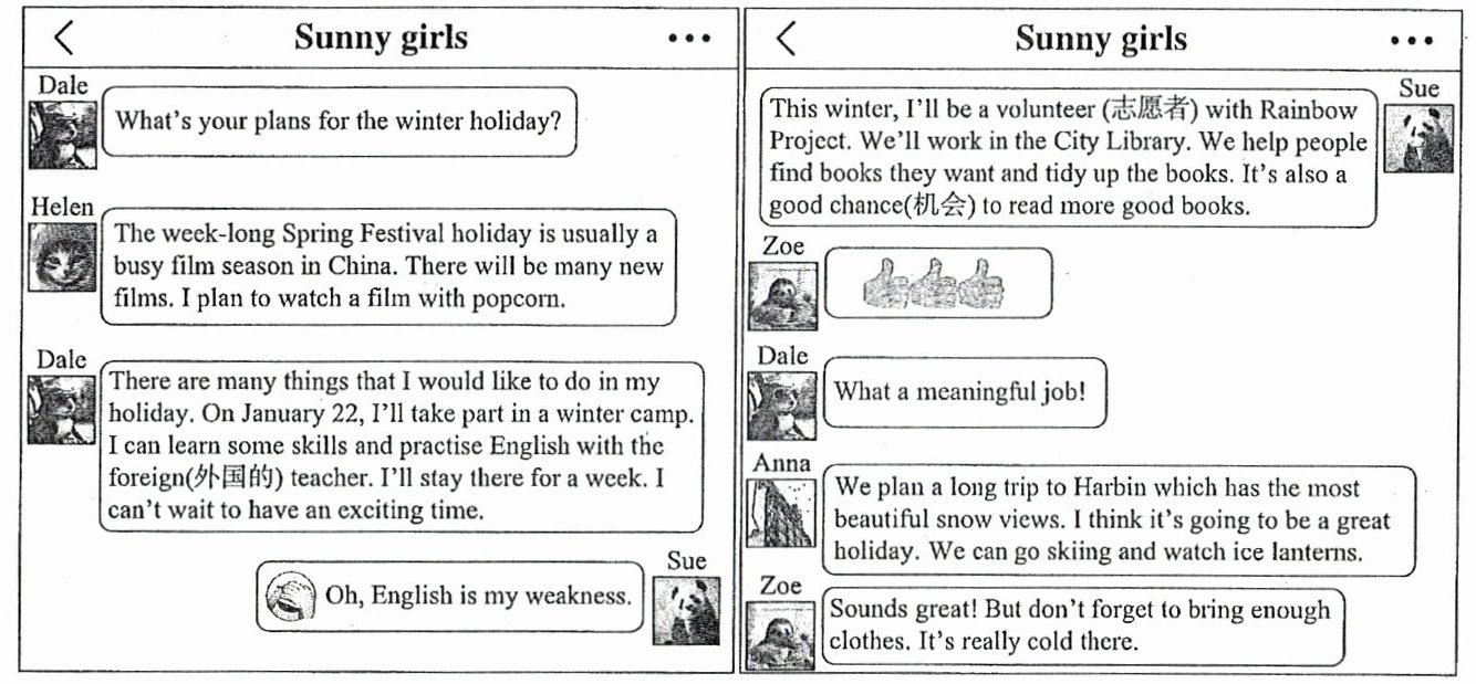 The tree was almost as tall as the room, and the Tree Top Star was in its place. A few parts of the tree were a little messy, and it was bare (光秃秃的) in the middle (中间). But the tree made the room warm and full of the happy smell of Christmas.