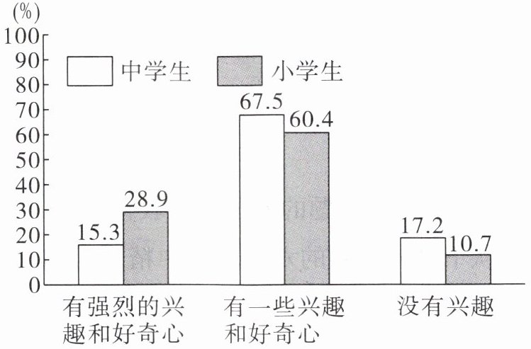 B.在知道一些科学家的事迹后,17.2%的中学生和 10.7%的小学生都表示没有兴趣,说明中小学生已经对科学研究失去了好奇心。