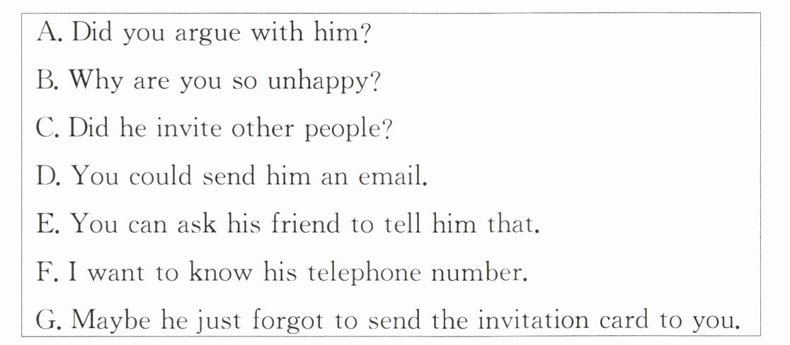 B:Yes,he did. Everyone got the invitation cards but I didn’t. I don’t know what I should do.