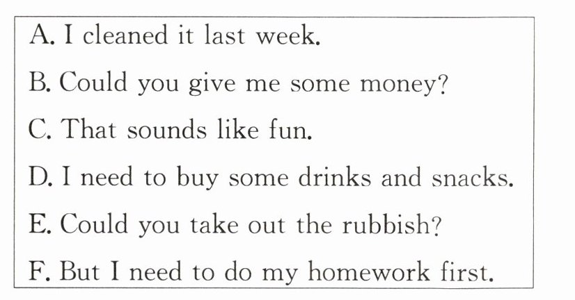 答案:1. to sweep the floor 2. hang out with 3. sort things into different boxes 4. invited me to his birthday party 5. sweep the floor