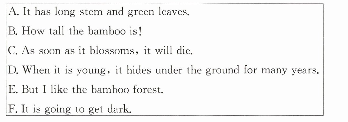 Amy:The bamboo can only blossom(开花)for once in their lives. 4. ______